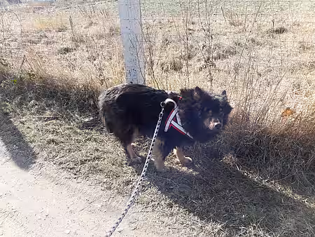 Funny (Leonberger-Kaukasemischling, 14 Jahre) ist nicht halb so lustig, wie es ihr Name vermuten lässt. Sie ist ebenfalls ein Hund, der nur mit Narkose gefangen und transportiert werden konnte. Hier pöbelt und und kläfft sie jeden voll, der sich ihrem Zwinger nähert. Bisher ist das Eis trotz tonnenweise Leckerlies und gutem Zureden nicht gebrochen – wir bleiben dran!